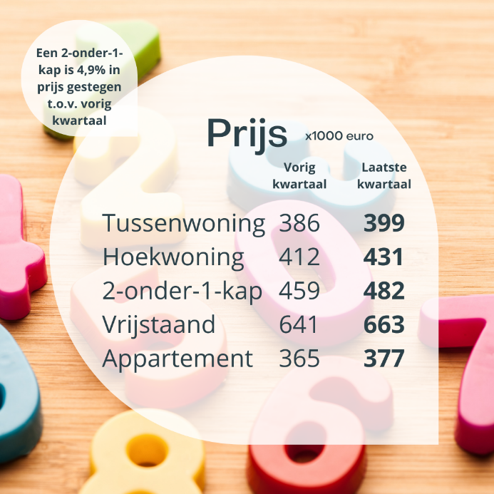 In Nederland was de grootste stijging in het aantal verkochte woningen te zien bij 2-onder-1-kap woningen. Die stijging was 33 procent ten opzichte van het kwartaal ervoor.